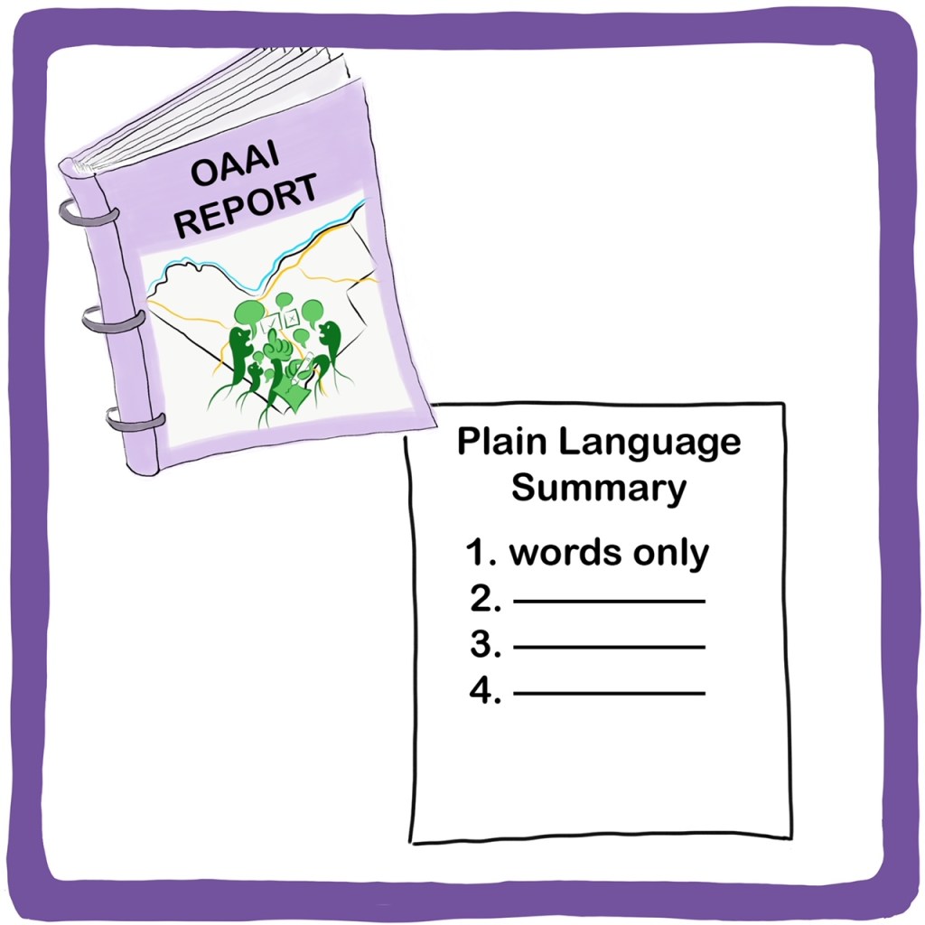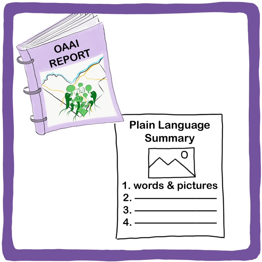 The ‘Plain Language Summary’ gives a short version of the OAAI project results. You can choose to read ‘words only’ or ‘words & pictures’.